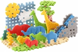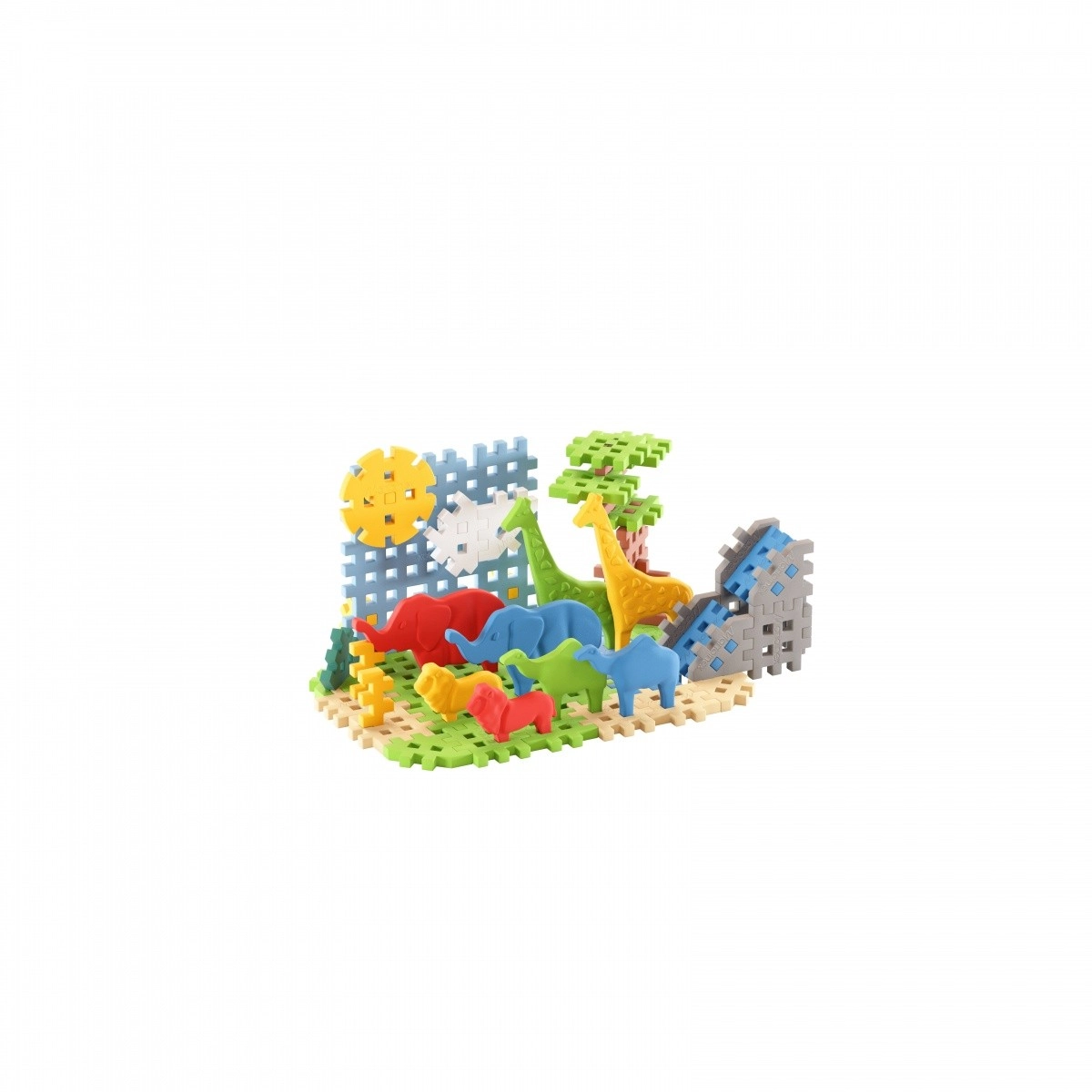 Cu setul de construcție Mini Waffle - Animale Savana, copiii pot crea propria lor lume fantastică plină de viață africană. Conține 50 de piese de diferite forme, care permit construirea de elemente scenice, cum ar fi o cascadă pitorească și un fundal impresionant al savanei. Este inclusă și o familie de lei la soare, elefanți la adăpat și girafe mai departe la orizont.