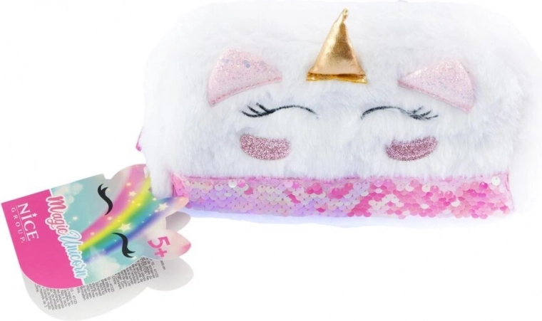 Penar de pluș cu motiv de unicorn oferă un loc ideal pentru a depozita creioane, pixuri și materiale școlare datorită designului său cu bandă dublă de paiete strălucitoare și închidere practică cu fermoar.
