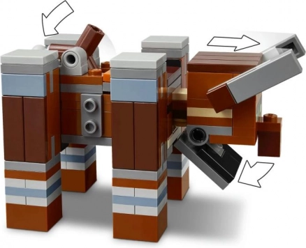 Figurina Devastator oferă o funcție de joc realistă: cu ajutorul unei manete poate pocni din fălci și ataca cu capul. Primești și minifigurine: paznicul cosmic, căpitanul raidului, colonistul pietrar și apărătorul, plus purcelușul. Echiparea bogată include sabie și cască de diamant, arbaletă, topor de fier, torțe, manechin de antrenament și alte elemente pentru povești fără limite.