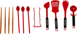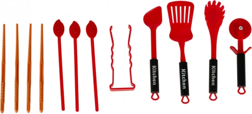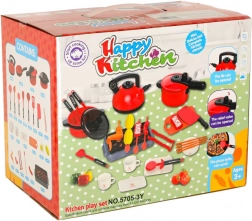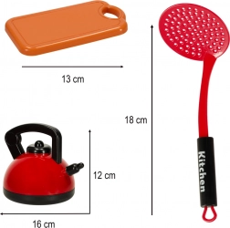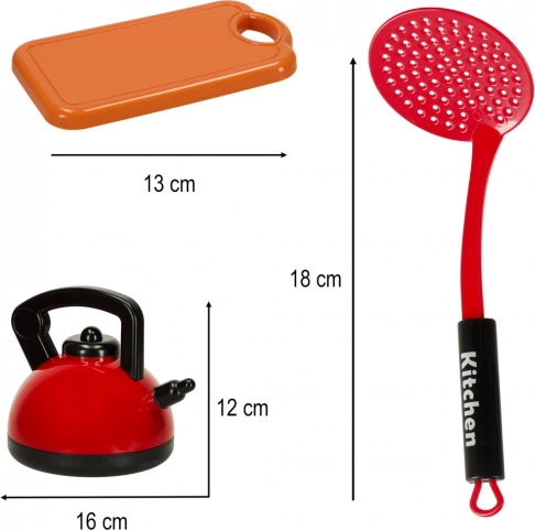 Include jucării precum grătar, tigaie, ceainic și alte accesorii utile de care copiii au nevoie pentru a se juca de-a bucătarii.