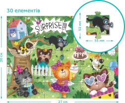 Asamblați puzzle-ul de dimensiuni 27 x 20 cm, care este un cadou ideal pentru orice iubitor de pisici și puzzle.