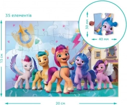 Distracția cu My Little Pony începe cu acest puzzle minunat. Bucurați-vă de asamblare și descoperiți o imagine frumoasă cu personajele preferate My Little Pony. Fiecare dintre cele 35 de piese este concepută pentru a încânta micii fani.