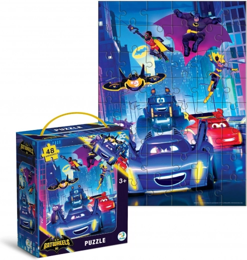 Descoperiți lumea Batwheels cu acest puzzle distractiv care conține 48 de piese captivante ce vor încânta copiii. Dimensiunile acestui puzzle după asamblare sunt de aproximativ 23 x 32 cm, ceea ce este ideal pentru mâinile mici. Include: