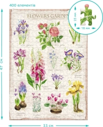 Bucurați-vă de relaxare cu lumea colorată a florilor de grădină datorită acestui puzzle unic de 400 de piese. O alegere perfectă pentru iubitorii de natură și puzzle-uri.