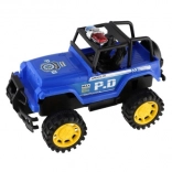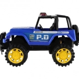 Designul robust off-road, cu șasiu înalt și roți proeminente, îi oferă mașinii siguranță în „terenul” camerei copilului sau în grădină. Aspectul de poliție, cu inscripții vizibile, susține jocul de rol și dezvoltă imaginația. Datorită mecanismului inerțial, e suficient să împingi mașina, iar aceasta pornește înainte fără baterii.