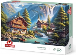 Cufundați-vă în lumea satului de lemn cu acest puzzle unic de 260 de piese. Prin asamblare, veți obține o imagine a unui sat minunat, care va aduce liniște și confort în casa dumneavoastră.