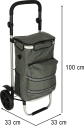 Căruciorul are un interior spațios de 40 de litri și este echipat cu un buzunar termo pentru depozitarea alimentelor răcite. Datorită mânerului ergonomic și roților mari, căruciorul este ușor de manevrat.