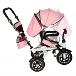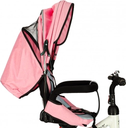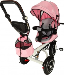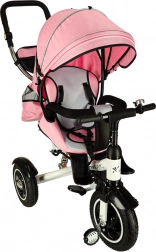 Designul atrăgător și modern, împreună cu mânerul reglabil, permit părinților să controleze direcția de mers. Copertina cu fereastră transparentă oferă protecție împotriva soarelui și a ploii, permițând, totodată, supravegherea copilului. Tricicleta este dotată cu reflexii, frână încorporată și hamuri de siguranță cu prindere în două puncte pentru siguranță maximă. Este convertibilă, fiind partenerul ideal de la o vârstă fragedă a copilului până la șase ani.