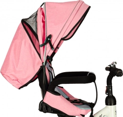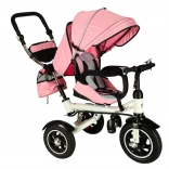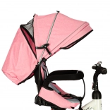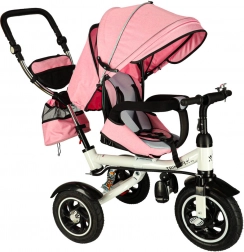 Tricicleta este dotată cu elemente de siguranță, cum ar fi hamurile cu prindere în două puncte și un scaun confortabil cu husă moale.