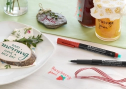 Set de 4 markere permanente de calitate marca Faber-Castell, potrivite pentru scrierea pe diverse suprafețe netede. Marker-ele sunt echipate cu un gumă specială pentru ștergerea ușoară a cernelei și au cerneală cu uscare rapidă și culori intense.