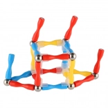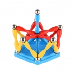 Bețele colorate din plastic cu capete magnetice și bilele metalice asigură o îmbinare rapidă și solidă în numeroase forme. Copiii însușesc jucându-se principiile construcției și stabilității.