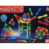 Acest set de construcție magnetic îmbină bețe colorate din plastic cu capete magnetice și bile metalice lucioase pentru conexiuni variabile. Copiii pot construi turnuri, poduri și modele geometrice, dezvoltând natural motricitatea fină, creativitatea și orientarea spațială. Piesele au forme netede, rotunjite, pentru o utilizare confortabilă și sigură.