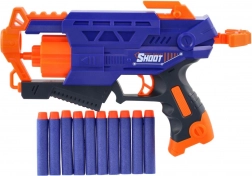 Pachetul include 10 gloanțe din spumă și o pistolă de 28 cm, ușor de ținut chiar și de mâinile mici.