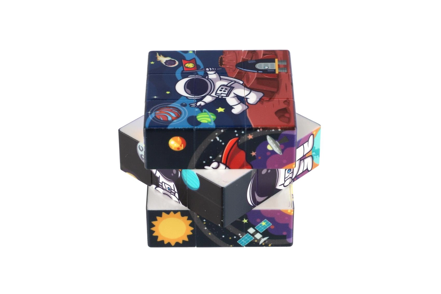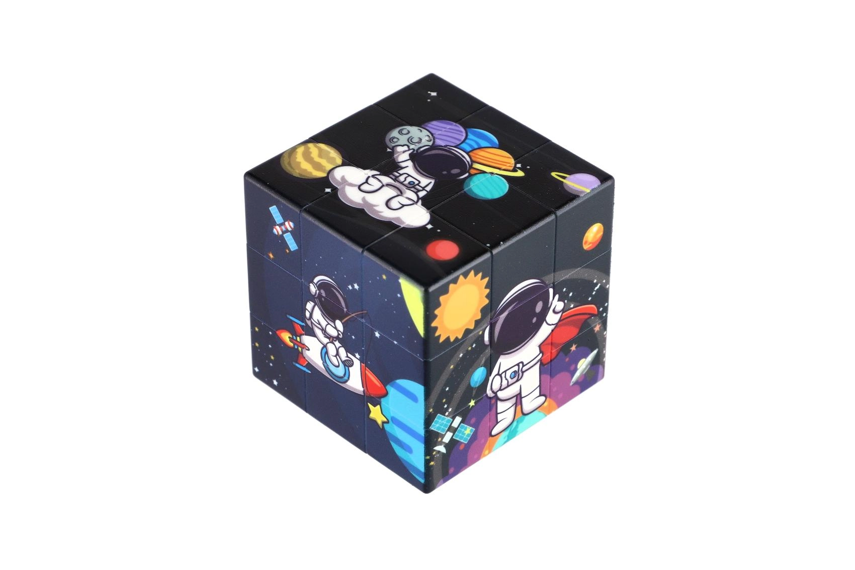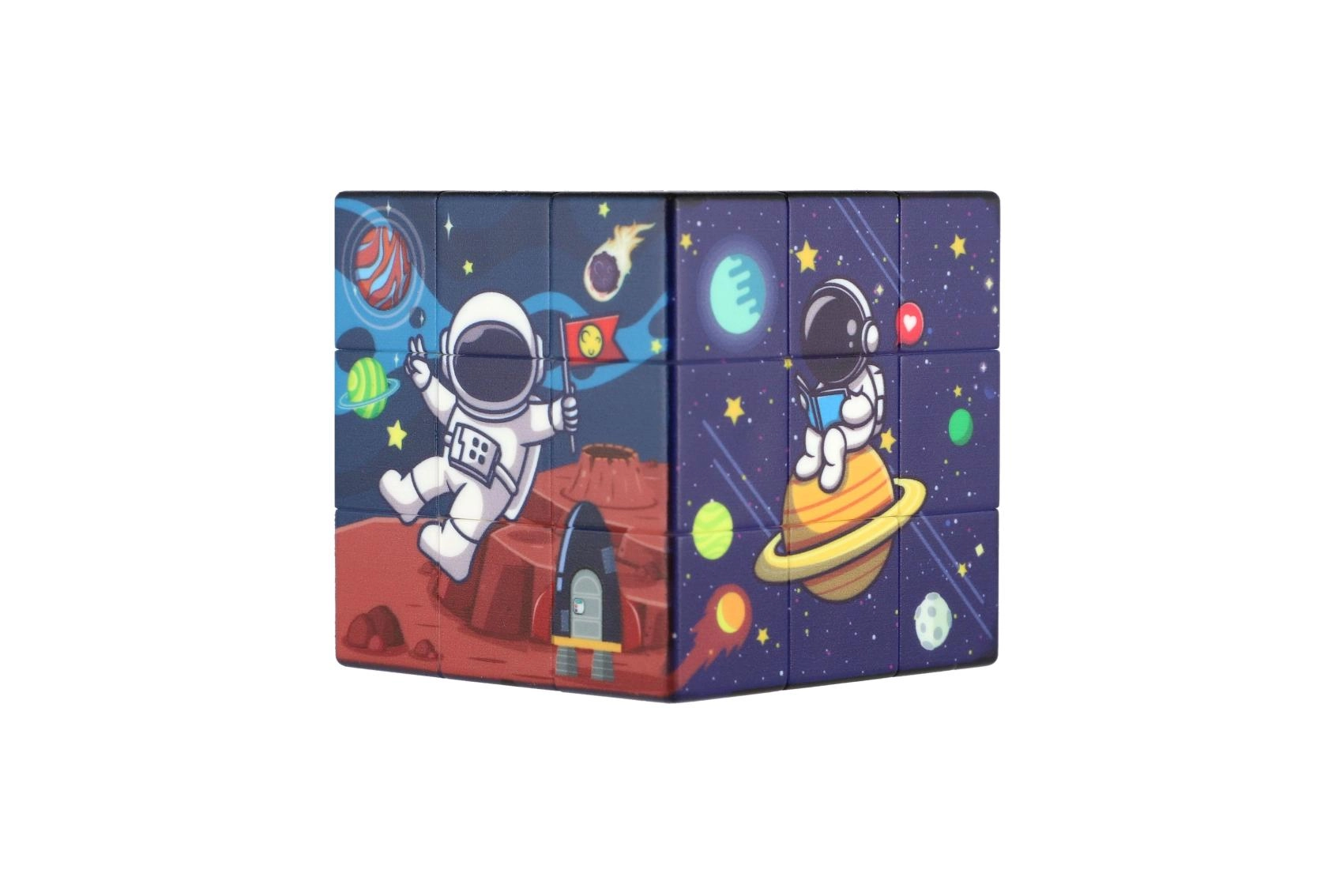 Descoperă bucuria rezolvării cu cubul 3x3 în captivantul motiv al spațiului. Datorită rotirii line și execuției solide din plastic, este ideal pentru antrenament zilnic și relaxare după o zi solicitantă.