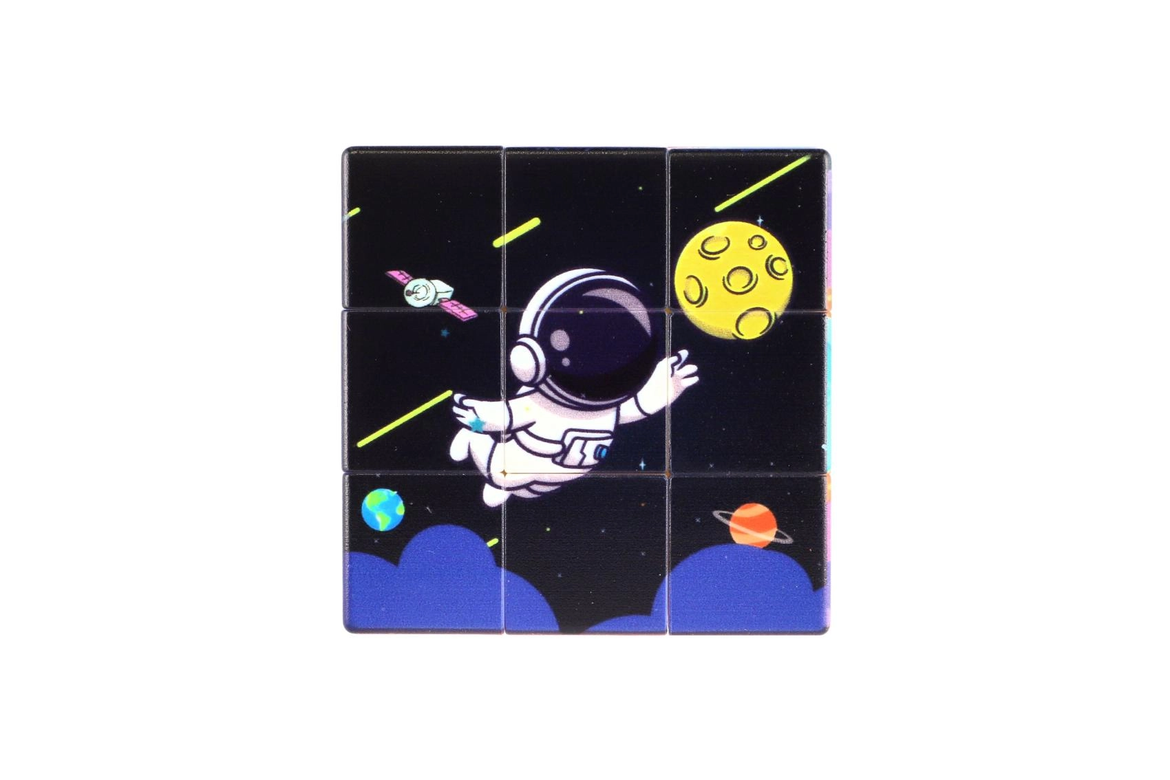 Antrenează-ți mintea și degetele cu acest clasic cub de logică 3x3 în design spațial original. Fiecare parte este decorată cu motive de planete, stele și galaxii, ceea ce îl face o distracție grozavă pentru copii și adulți și susține logica, răbdarea și motricitatea fină.