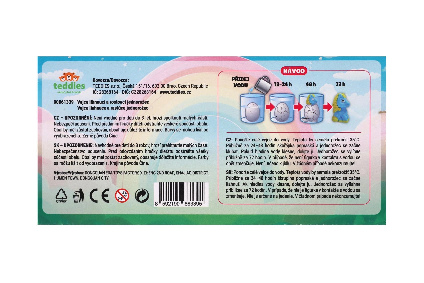 Este suficient să scufunzi oul într-un recipient cu apă, iar în câteva ore va începe să crape – în interior va apărea un mic unicorn. Acesta va continua să crească timp de câteva zile, până își atinge dimensiunea completă. Această jucărie magică stimulează curiozitatea copiilor, răbdarea și aduce bucuria descoperirii.