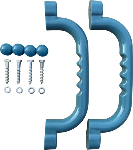 Aceste mânere din plastic turcoaz sunt proiectate pentru a oferi siguranță și stabilitate pe locurile de joacă pentru copii. Sunt fabricate dintr-un material solid și durabil, cu o capacitate de încărcare de până la 70 kg, ceea ce garantează fiabilitate și utilizare pe termen lung. Materialul de montare este inclus în pachet, facilitând instalarea: