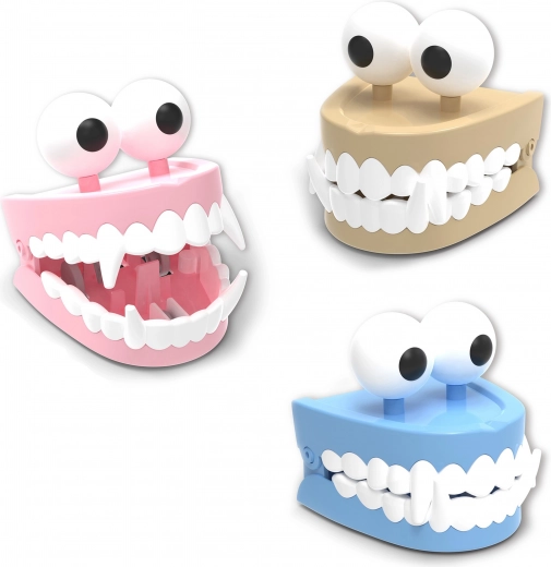Dinți înfricoșători cu cheiță sunt o jucărie amuzantă care cu siguranță va distra atât copiii cât și adulții. După ce sunt învârtiți, dinții merg și fac clic, ceea ce creează momente neașteptate pline de râsete.