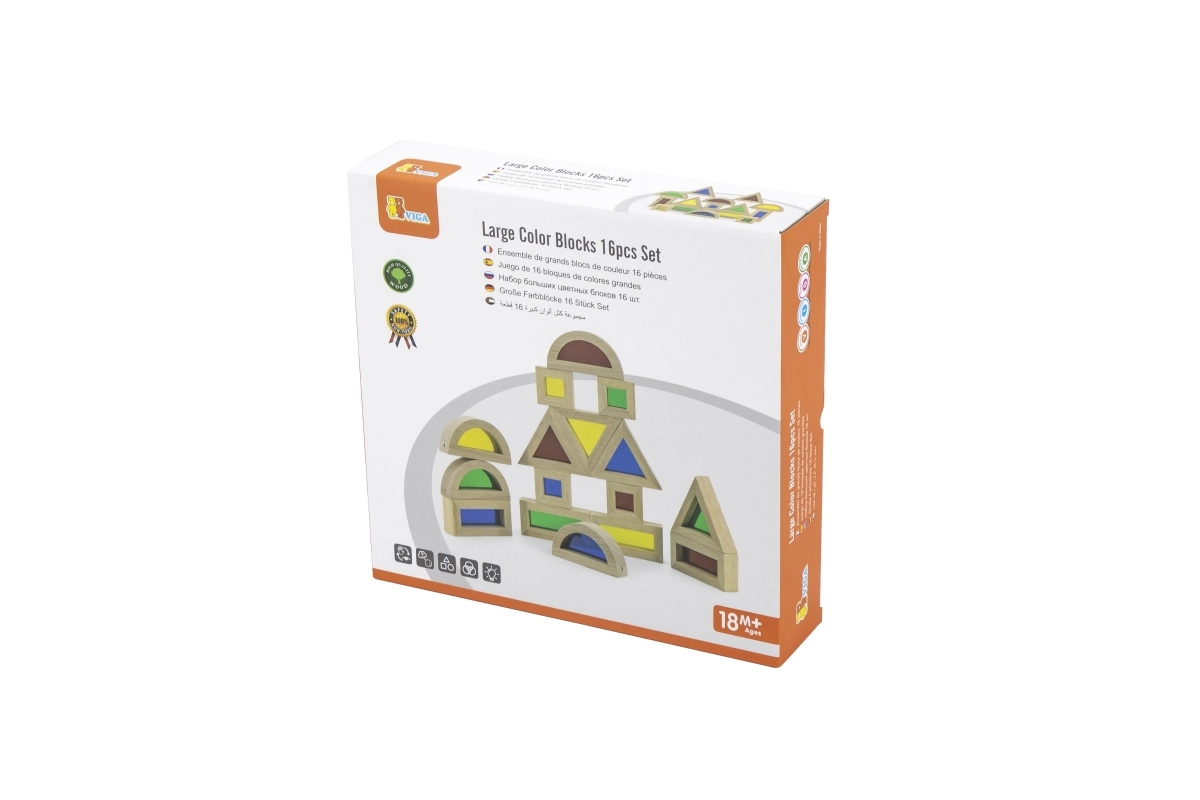Descoperă jucăria inteligentă pentru cei mici: cărămizi de construcție din lemn cu ferestre colorate transparente, în set de 16 piese. Susțin motricitatea fină, coordonarea mână–ochi, creativitatea și învățarea culorilor și formelor. Potrivite de la 18 luni, în ambalaj cadou practic.