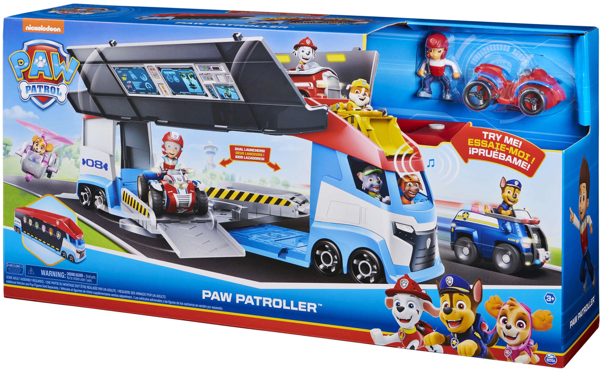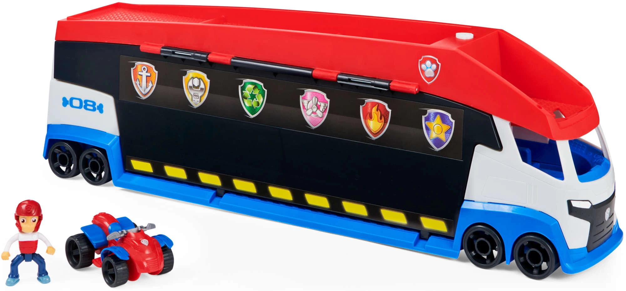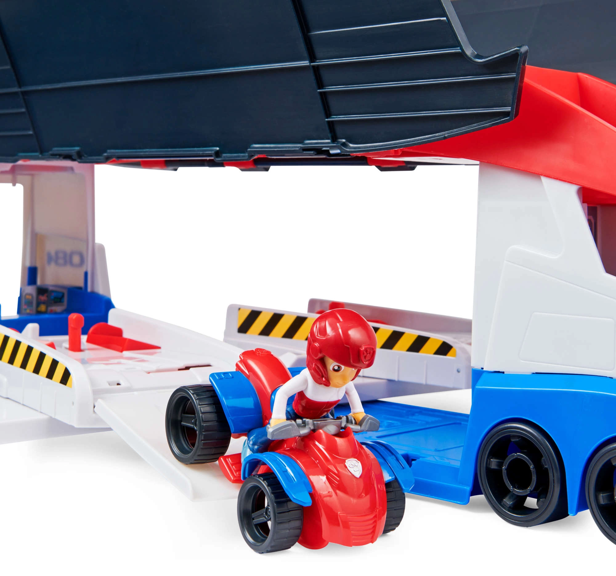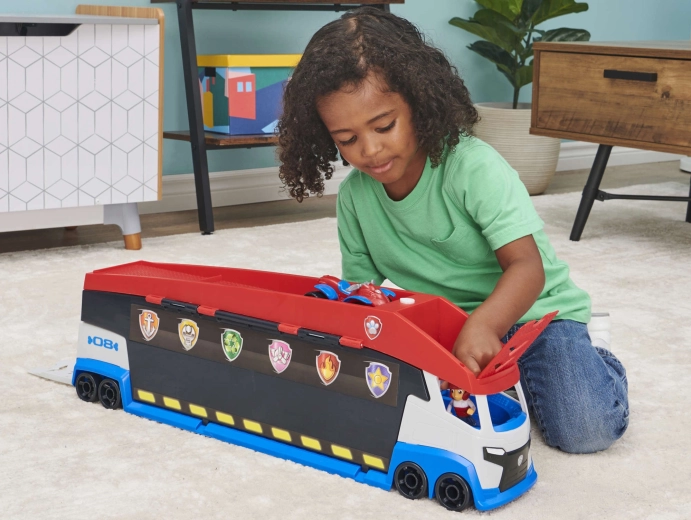 Transportorul uriaș inspirat de îndrăgitul serial PAW PATROL îi va încânta pe toți micii salvatori. Datorită panourilor laterale rabatabile și rampelor, camionul se transformă într-un service mobil și un centru de comandă. La apăsarea butonului cu logo-ul lăbuței, se aud sunete realiste de motor, claxon și mers înapoi, care intensifică atmosfera de joc.