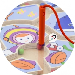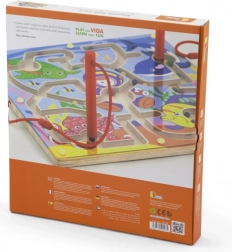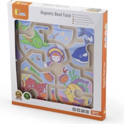 Oferiți copiilor distracție inteligentă cu labirintul magnetic din lemn, care le dezvoltă abilitățile într-un mod natural și ludic. Cu ajutorul baghetei magnetice, copiii conduc bilele colorate pe trasee întortocheate, antrenând priza, concentrarea și coordonarea mână–ochi. Datorită construcției închise în siguranță, bilele nu se pierd, iar jocul este ideal și pentru călătorii.