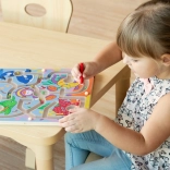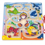 Formatul mare al plăcii, cu dimensiunile 30 × 30 × 1,3 cm, oferă suficient spațiu pentru explorare. Ilustrațiile vesele subacvatice încurajează denumirea culorilor și a animalelor, numărarea bilelor și inventarea propriilor sarcini de joc. Execuția durabilă din lemn face față utilizării zilnice acasă și la grădiniță.