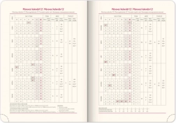 Această agendă săptămânală combină stilul și funcționalitatea datorită designului albastru-auriu cu suprafață metalică și dată în relief. Dispune de elemente practice, precum colțuri rotunjite, suport pentru creion și o bandă elastică, asigurând utilizarea confortabilă. Agenda include un program cu calendar ceho-slovac și alte limbi precum engleză, germană, maghiară și rusă.