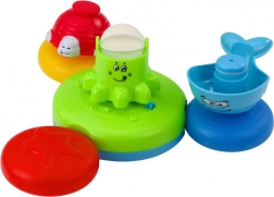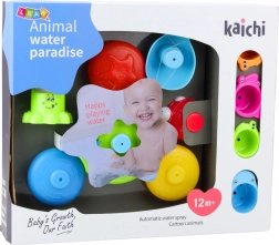 Prin intermediul elementelor de joacă se dezvoltă coordonarea mână-ochi, abilitățile manuale și înțelegerea naturală a cauzalității. Figurinele colorate și moi în forme de animale simpatice sunt ideale pentru mânuțele mici ale copiilor, permițându-le manipularea facilă și posibilitatea de a turna apă în afara fântânii.
