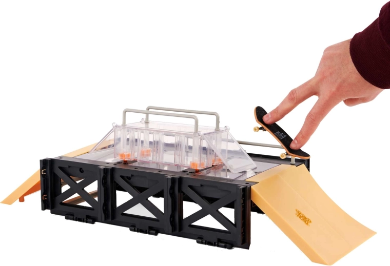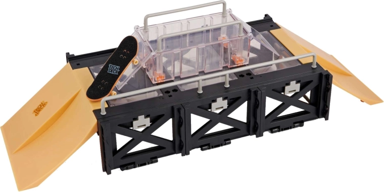 Datorită pieselor modulare, asamblezi configurații variate – de la kickere duble la balustrade lungi. Setul este compatibil cu alte rampe Tech Deck, astfel încât îți poți extinde treptat mini-parcul.