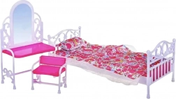 Setul de mobilier pentru păpuși oferă multe opțiuni de joc – copilul poate pune păpușile în pat, efectua toaleta de dimineață sau pregăti păpușa pentru bal. Joaca cu mobilierul dezvoltă imaginația, creativitatea și abilitățile manuale și învață copilul să aibă grijă de ordine și spațiu. Mobilierul este ușor și fabricat din plastic durabil și sigur. Potrivit pentru majoritatea păpușilor de tip Barbie și similare (aprox. 29 cm înălțime).