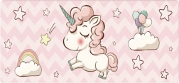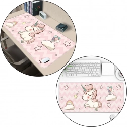 Pad-ul este fabricat din cauciuc moale, dar durabil, asigurând o aderență stabilă pe suprafața mesei și împiedicând alunecarea. Strat superior din material plăcut la atingere și rezistent la uzură. Designul roz cu motive de unicorn, nori și stele aduce o atmosferă de basm și înveselește spațiul.