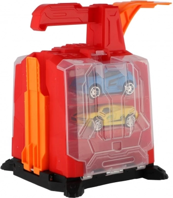 Fără așteptare la start – garajul cu lansator transformă fiecare zi într-o cursă palpitantă. Datorită dimensiunilor compacte, este ideal atât acasă, cât și în călătorii, servind totodată drept spațiu de depozitare practic pentru mașinuțe. Ușițele transparente și elementele rabatabile sporesc atractivitatea în timpul jocului.