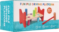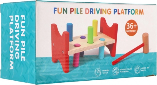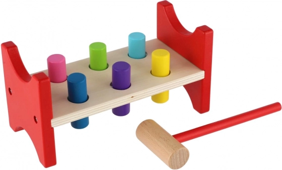 Această jucărie din lemn atemporală sprijină învățarea naturală prin joc. Copiii bat cu ciocănelul țintele colorate în orificii, antrenând astfel precizia mișcării, ritmul și răbdarea. Banca solidă din lemn, combinată cu margini rotunjite în siguranță, asigură o durată lungă de viață și utilizare sigură.