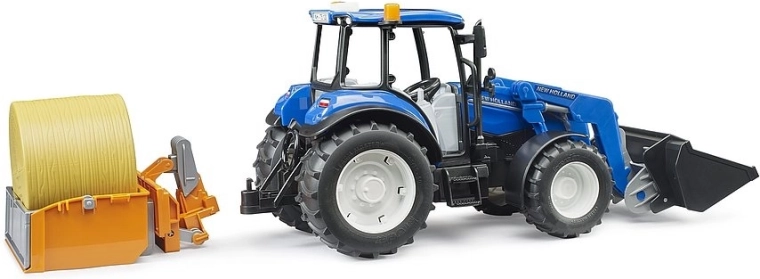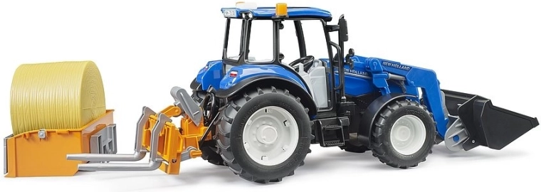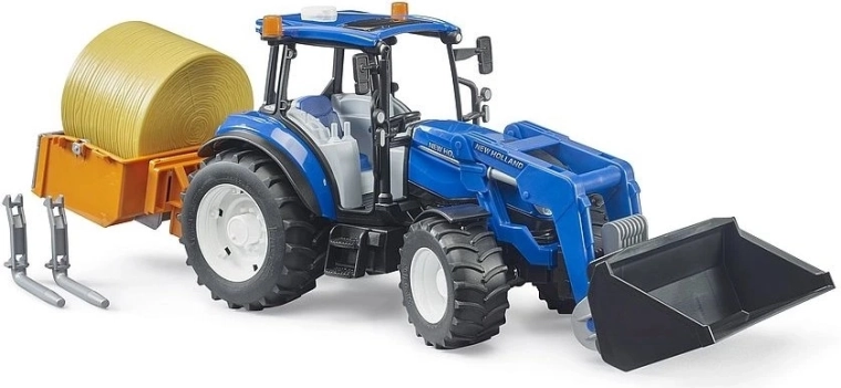 Tractorul BRUDER NEW HOLLAND T5.120 este un ajutor versatil pentru fermă, cu execuție precisă și construcție rezistentă. Datorită încărcătorului frontal funcțional, furcilor suplimentare și benei, copiii pot încărca, transporta și descărca cu ușurință baloți de fân sau alte materiale. Axele suspendate și puntea față pentru teren accidentat asigură o deplasare stabilă chiar și în afara suprafețelor netede.