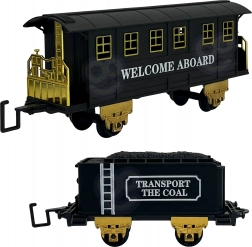 Sunt incluse două vagoane detaliate – de cărbuni și pentru pasageri. Se cuplează ușor și rulează lin pe șină.
