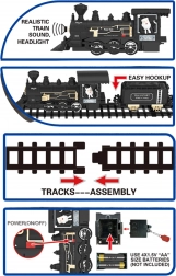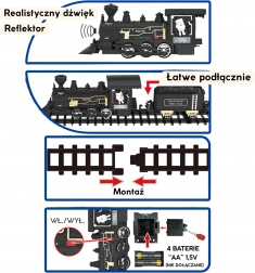 Locomotiva cu far luminat și sunete autentice de tren cu abur creează o atmosferă captivantă și îi prinde pe copii în joc.