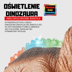 Descoperiți partenerul interactiv pentru micii iubitori de dinozauri. Acest RC T‑Rex se deplasează înainte, dansează pe muzică veselă și, datorită ochilor, spatelui și limbii iluminate, arată cu adevărat impunător. Răgetul realist și mișcările fluide transformă orice cameră într-o pădure jurasică.