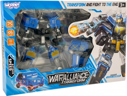 Pregătește-te pentru ore de distracție cu robotul Woopie, care oferă posibilități nelimitate de joc. Este suficient să transformi robotul în mașină și invers cu o singură mână. Ideal pentru copii de la 3 ani, acest produs susține creativitatea, abilitățile manuale, gândirea logică și dezvoltarea socială a acestora. Setul include un robot transformabil robust, accesorii de luptă și elementele necesare pentru a-l transforma în vehicul.