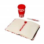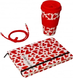 Bucurați-vă de scris și organizare zilnică cu acest caiet stilat în format A5. Coperta sa tare protejează conținutul, în timp ce designul cu motiv inimioară adaugă un strop de eleganță.