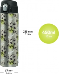 Acest minunat termos poate fi operat cu ușurință de copii încă de la vârste mici datorită deschiderii intuitive și muștiucului practic din silicon. Capacitatea sa este de 450 ml și este disponibil în mai multe modele jucăușe ce pot fi asortate cu alte necesare școlare ale copiilor.