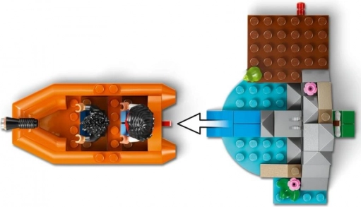Construiți șopronul cu ponton, trimiteți barca în aventură cu ajutorul lansatorului și lăsați T-rexul să dărâme construcția – apoi o puteți reasambla cu ușurință.