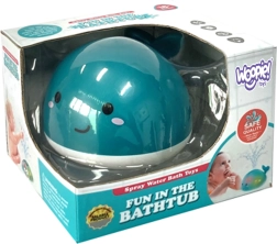 Balenuța cu zâmbet care stropește apă transformă baia în distracție.