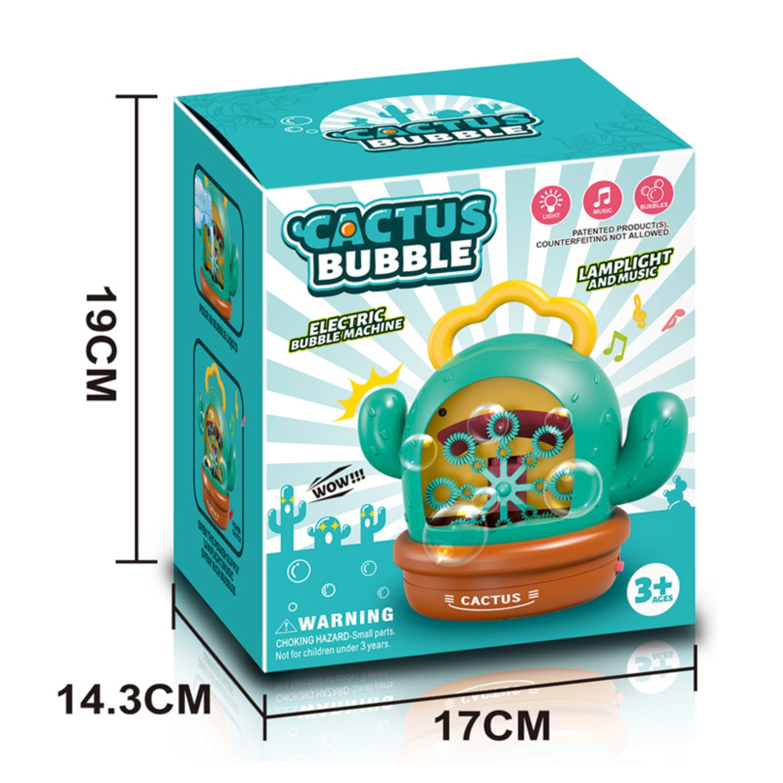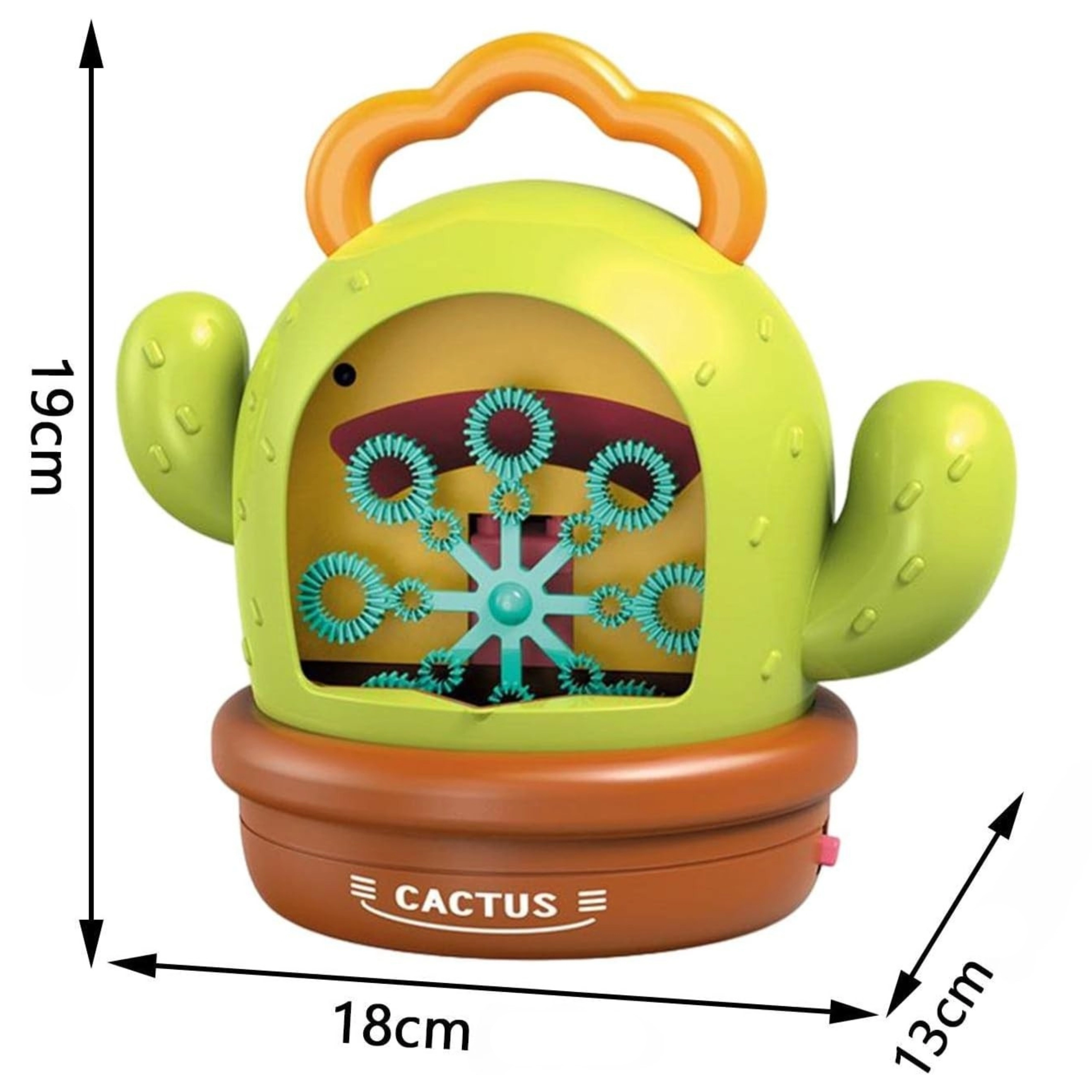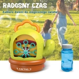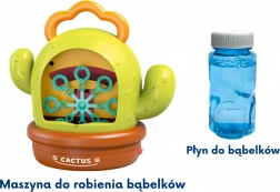 Pornește distracția cu adorabila mașină de baloane în formă de cactus de la WOOPIE. După turnarea soluției și pornire, creează imediat sute de baloane, completate de efecte luminoase și sunete. Datorită controlului simplu, recipientului închis etanș pentru soluție și mânerului practic, este ideală atât pentru cameră, cât și pentru grădină, pentru copii de la 3 ani.