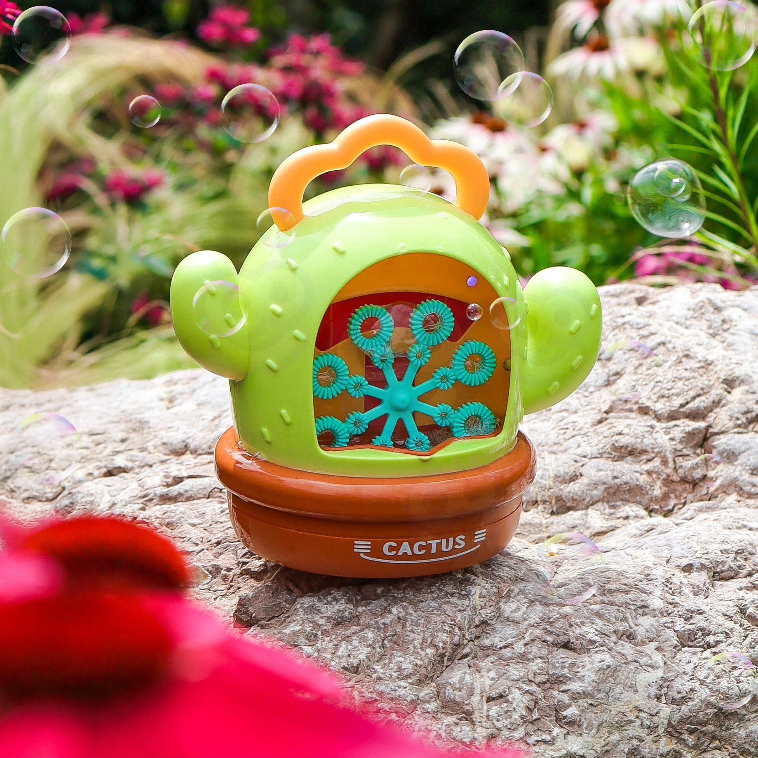 Mașina electrică de baloane în formă de cactus transformă orice după-amiază într-un spectacol magic. Doar toarnă soluția, apasă butonul și lasă-te purtat de valul de balonașe sclipitoare, îndrăgite de copii și adulți deopotrivă. Construcția de calitate și designul sigur garantează joacă fără griji, acasă sau afară.