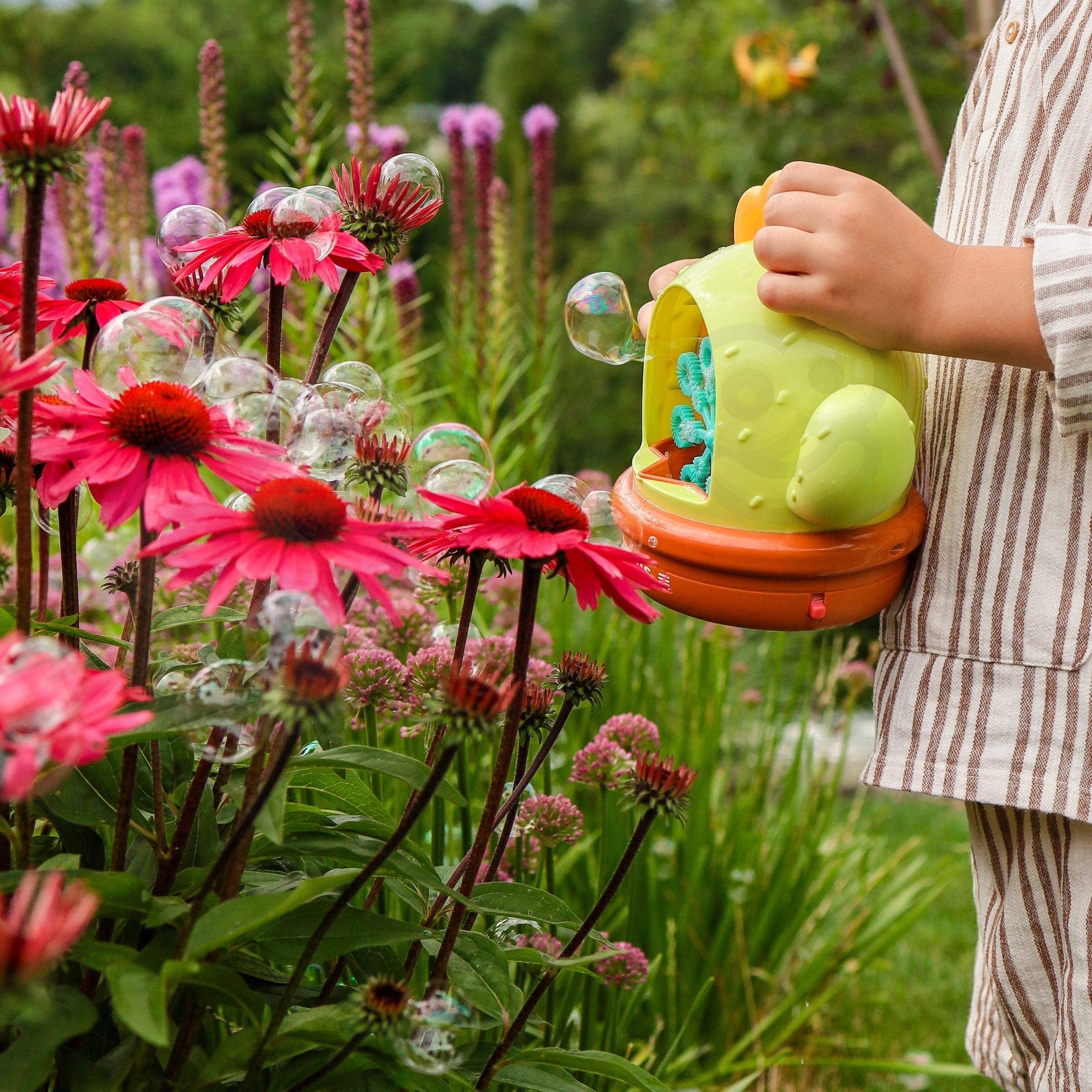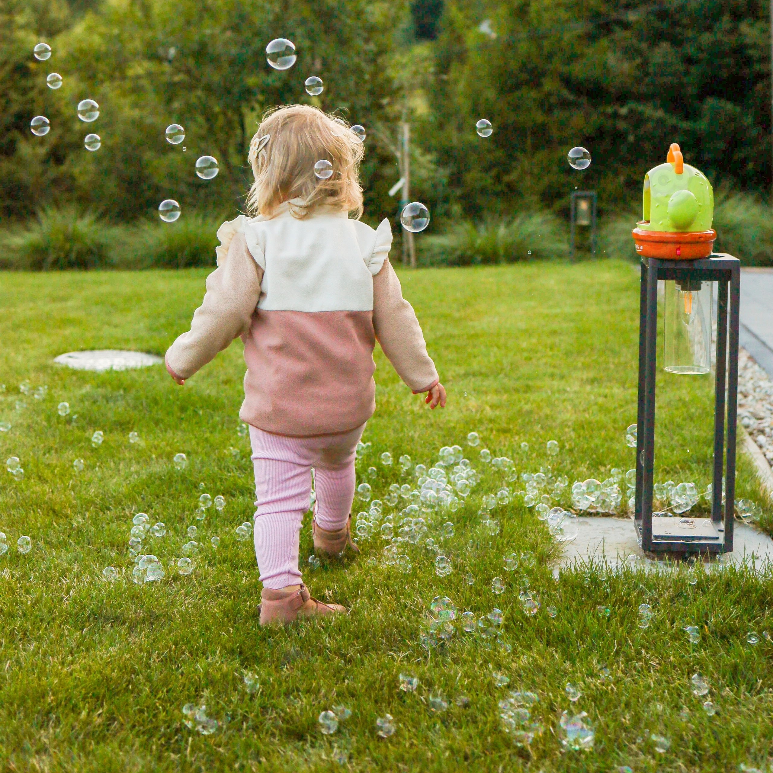 Suflarea automată creează în câteva secunde sute de balonașe – ideală pentru petreceri în grădină și joacă în interior.