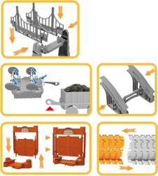 Setul include o locomotivă cu propulsie pentru transportul „încărcăturii”, vehicule mici pentru lucrul pe șantier și un set bogat de accesorii. Asamblarea este intuitivă și solidă, astfel încât copiii pot reconfigura pista în mod repetat și pot testa variante noi. Bateriile sunt incluse, așa că distracția poate începe imediat.