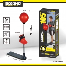 Setul de box pentru copii de la marca Woopie aduce bucurie și multe oportunități pentru mișcare și antrenament. Setul include mănuși de box și un suport ajustabil cu sac. Acest set este destinat copiilor de la trei ani și se adaptează înălțimii lor datorită posibilității de ajustare de la 70 la 105 cm.