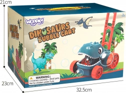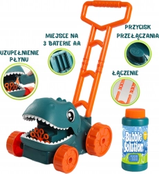La împingere se pornește mecanismul care eliberează din gura dinozaurului sute de bule – bucurie instantă și distracție nesfârșită în aer liber.