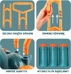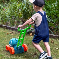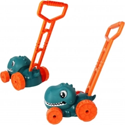 Această mașinuță de tuns colorată în formă de dinozaur îi îmbie pe copii la mișcare – este suficient să torni soluția în recipient, să pornești, iar la împingere se activează mecanismul de bule care eliberează o cascadă de bule. Contururile moi, expresia prietenoasă și roțile stabile susțin joaca sigură și plină de bucurie în grădină sau pe trotuar.