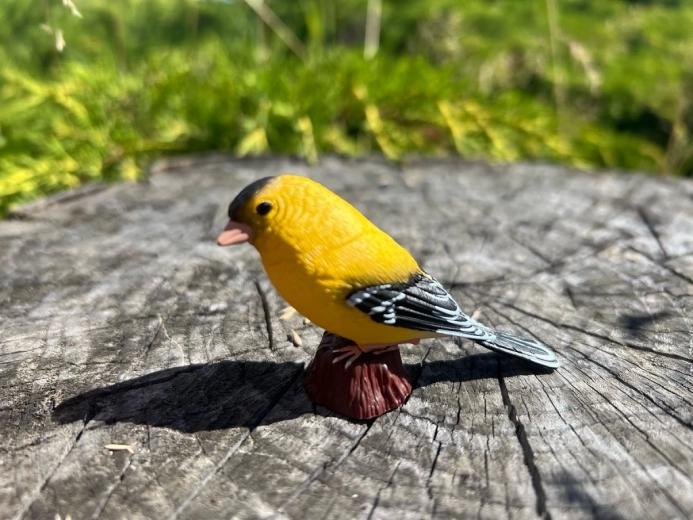 Descoperiți farmecul naturii cu figurina realistă a sticletului galben. Pictura manuală detaliată evidențiază coloritul caracteristic galben-negru, desenul fin al aripilor și puful mic. Figurina este excelentă pentru joacă, învățare și ca accesoriu stilat în camera copilului.